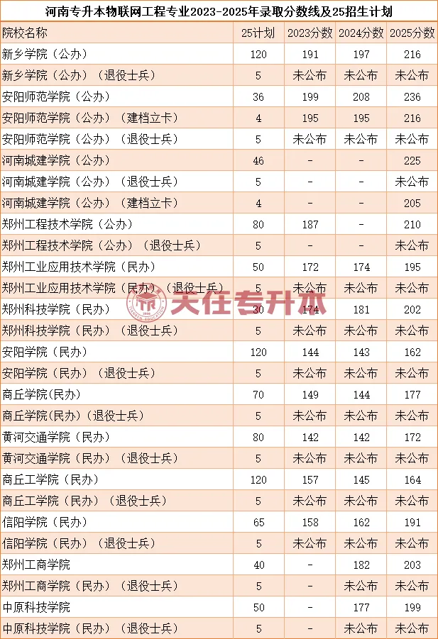 2025年河南专升本物联网工程专业共招生980人,部分院校未公布录取分数线。