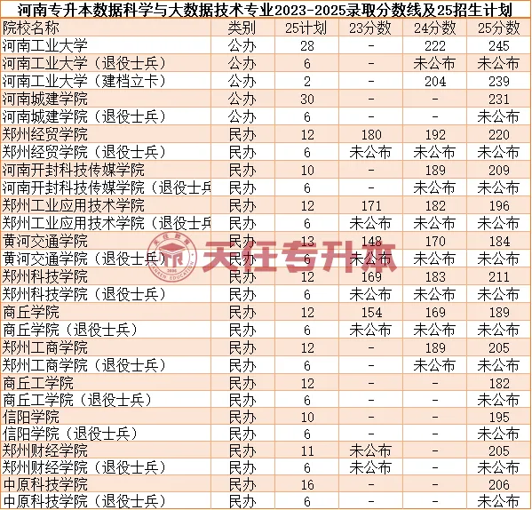 2025年河南专升本数据科学与大数据技术专业招生人数270人,普通考生招生人数190人,退役士兵招生人数78人,建档立卡2人。