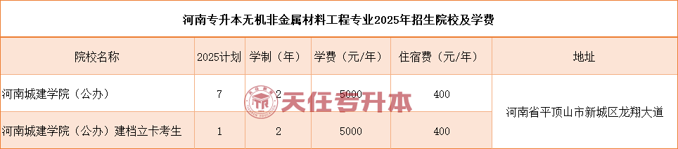 河南专升本无机非金属材料工程专业2025年具体学费信息如下: