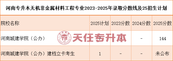 河南专升本无机非金属材料工程2023-2025分数线