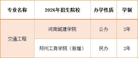 2025年河南专升本交通工程专业共招生79人,招生院校1所,1所院校是公办院校。