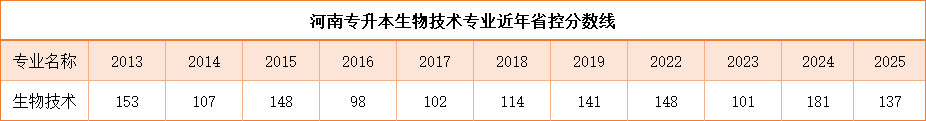 河南专升本生物技术2013-2025年省控线