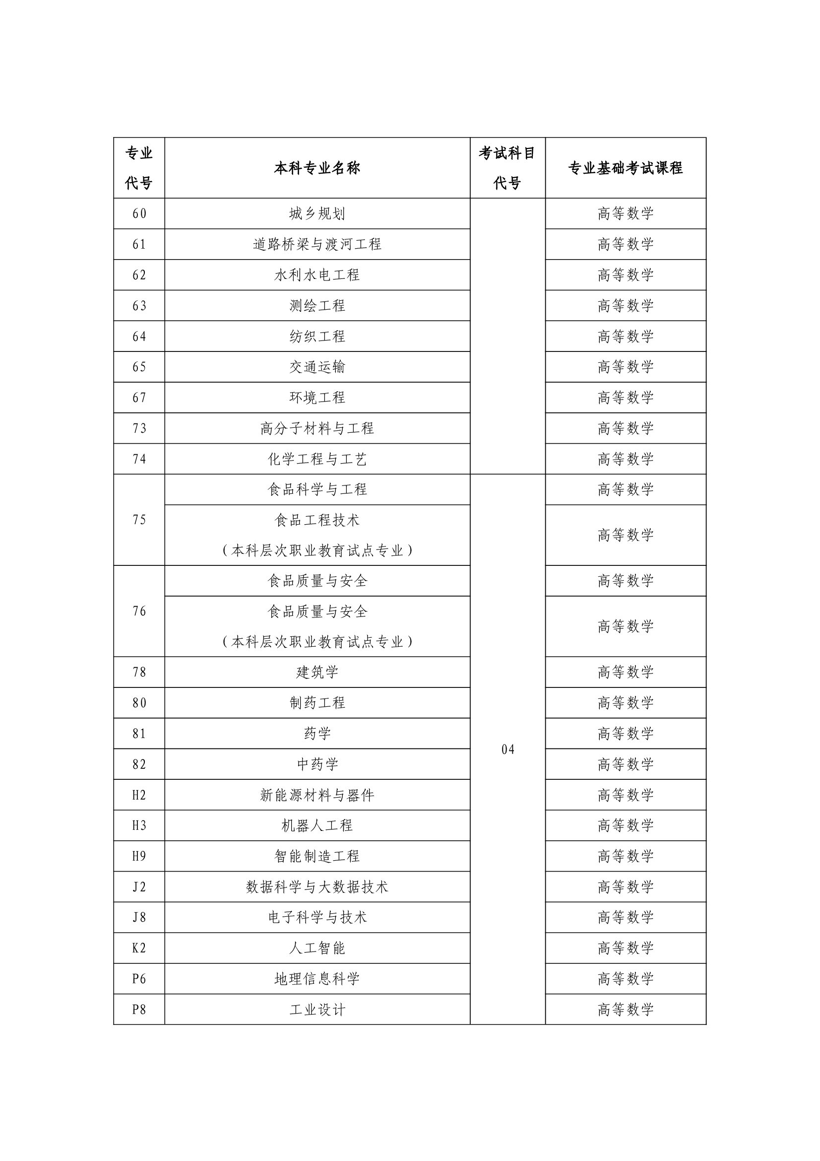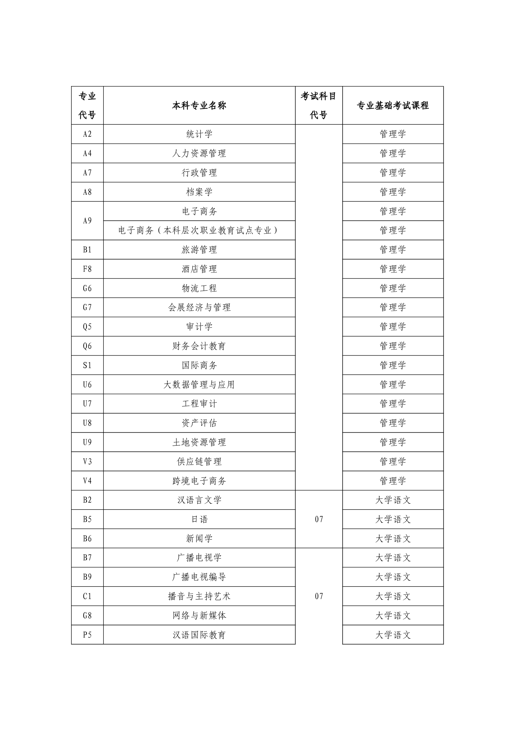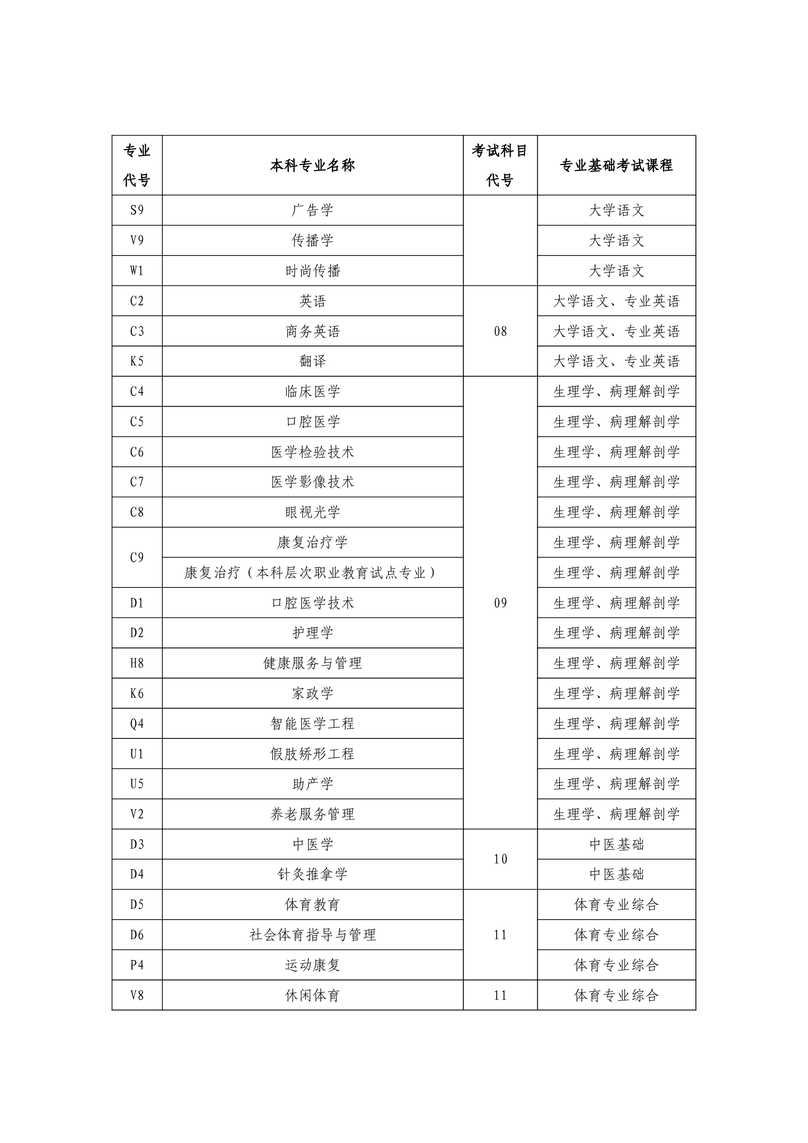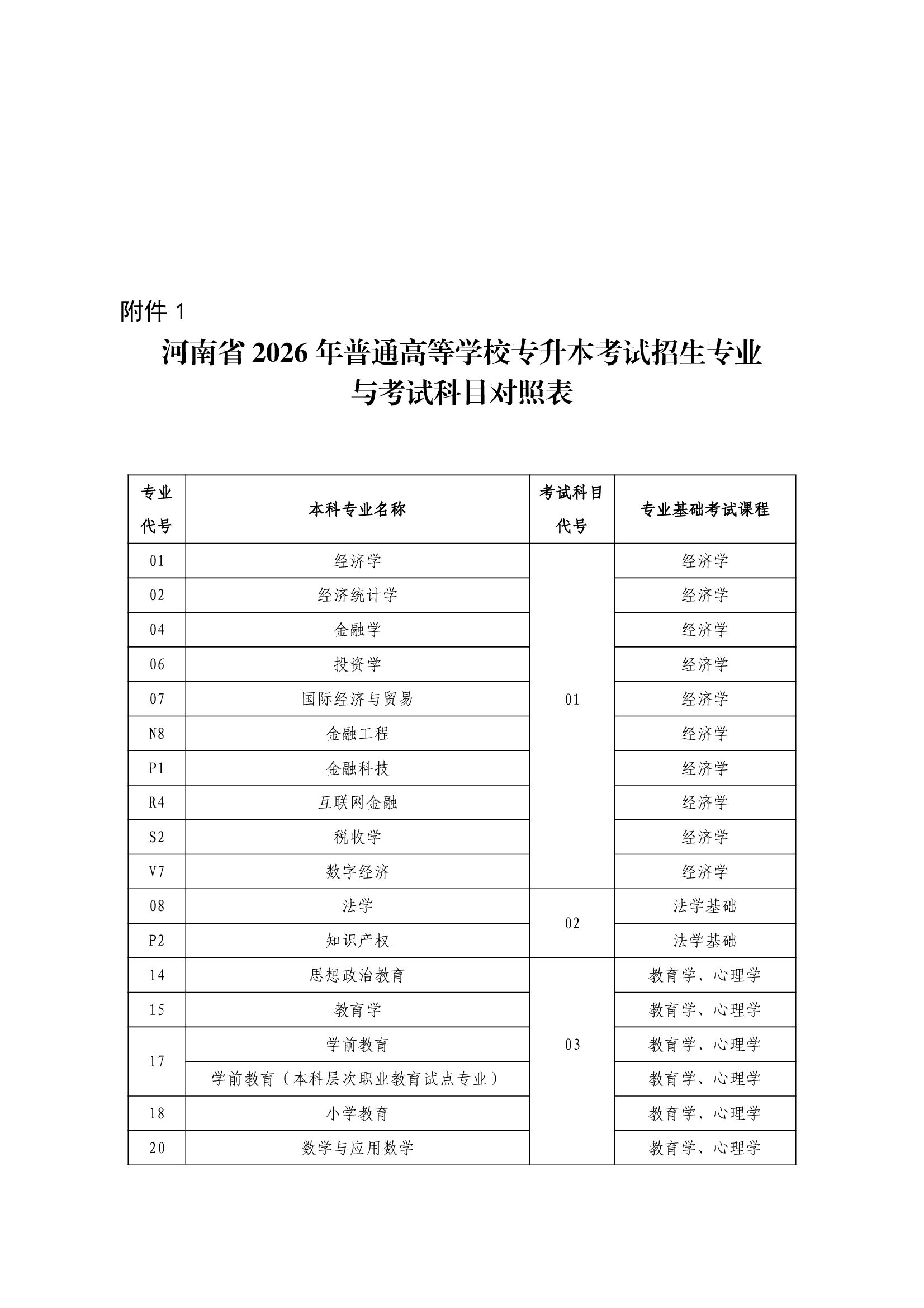 河南省2026年普通高校专升本考试招生专业与考试科目对照表