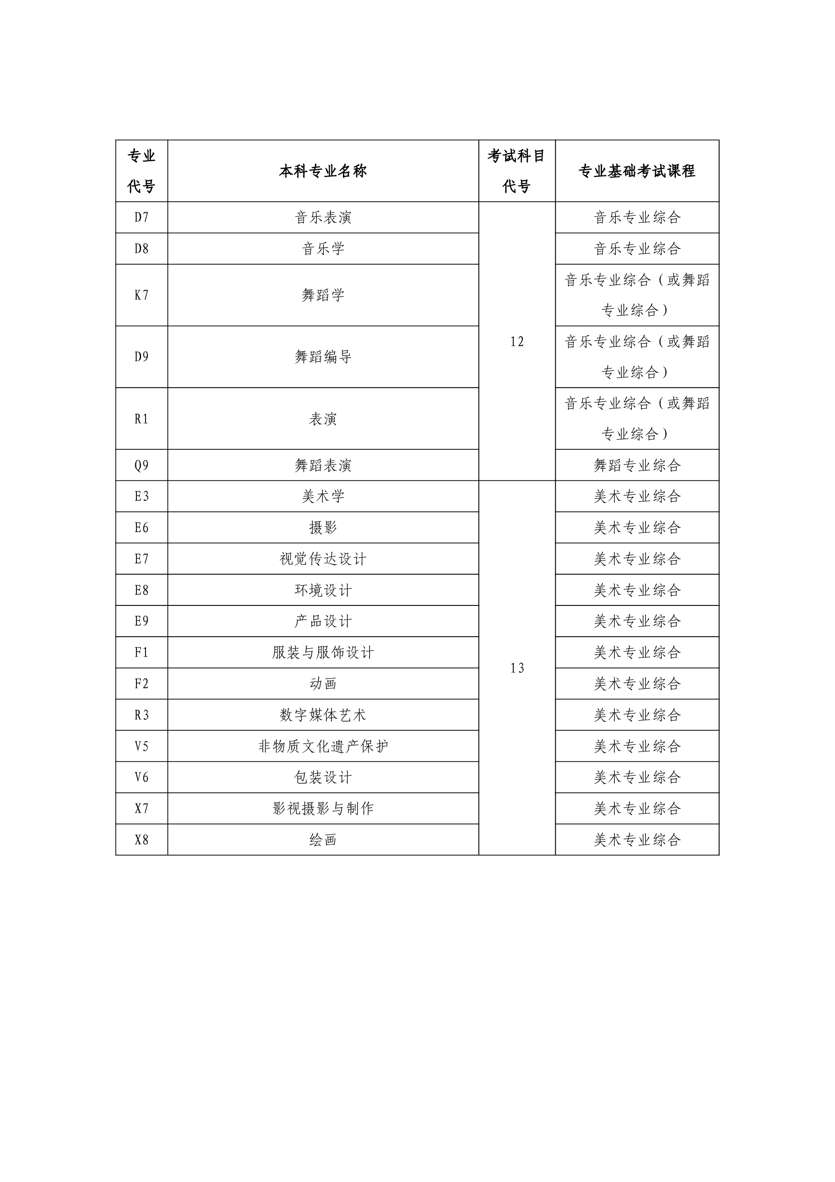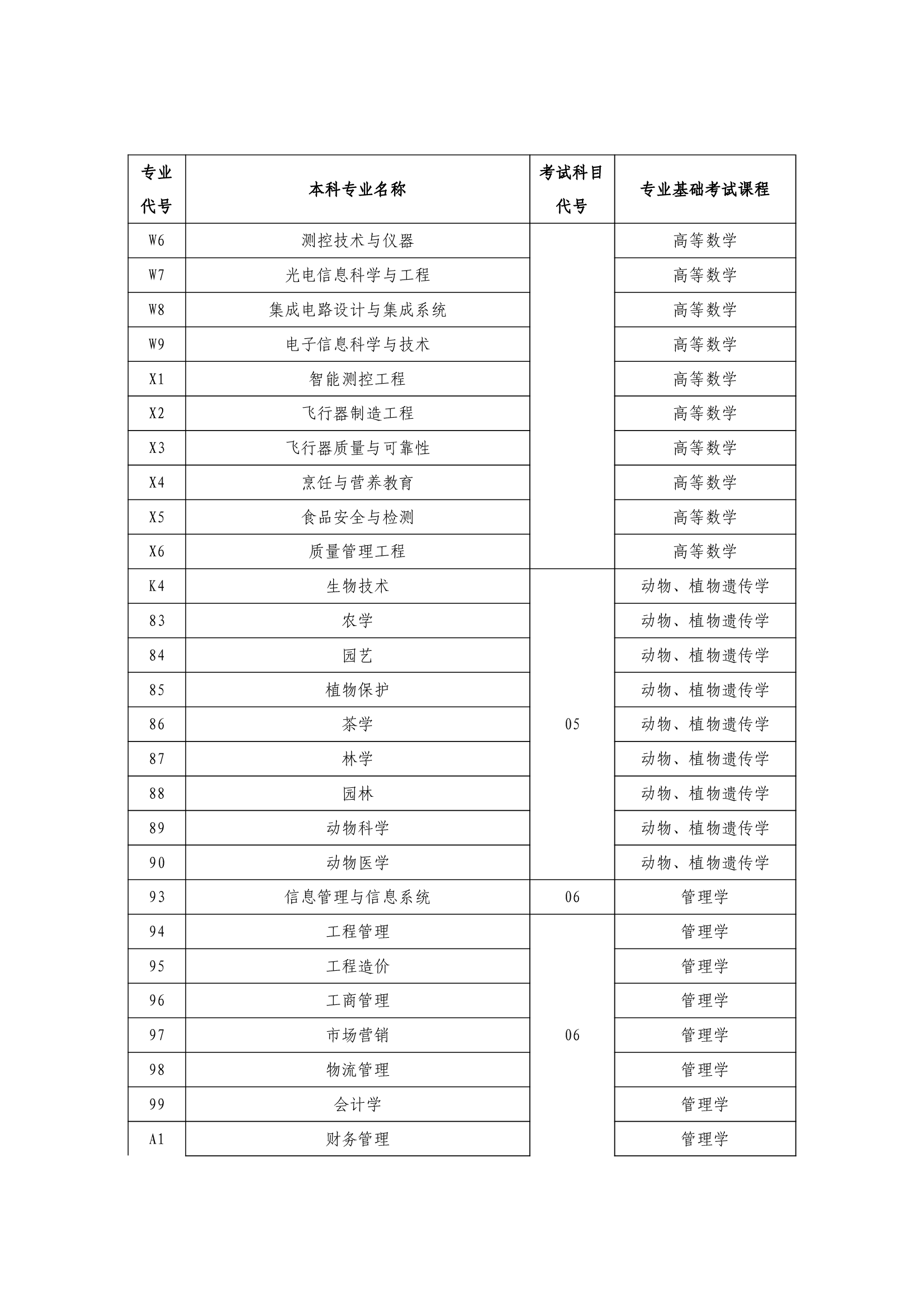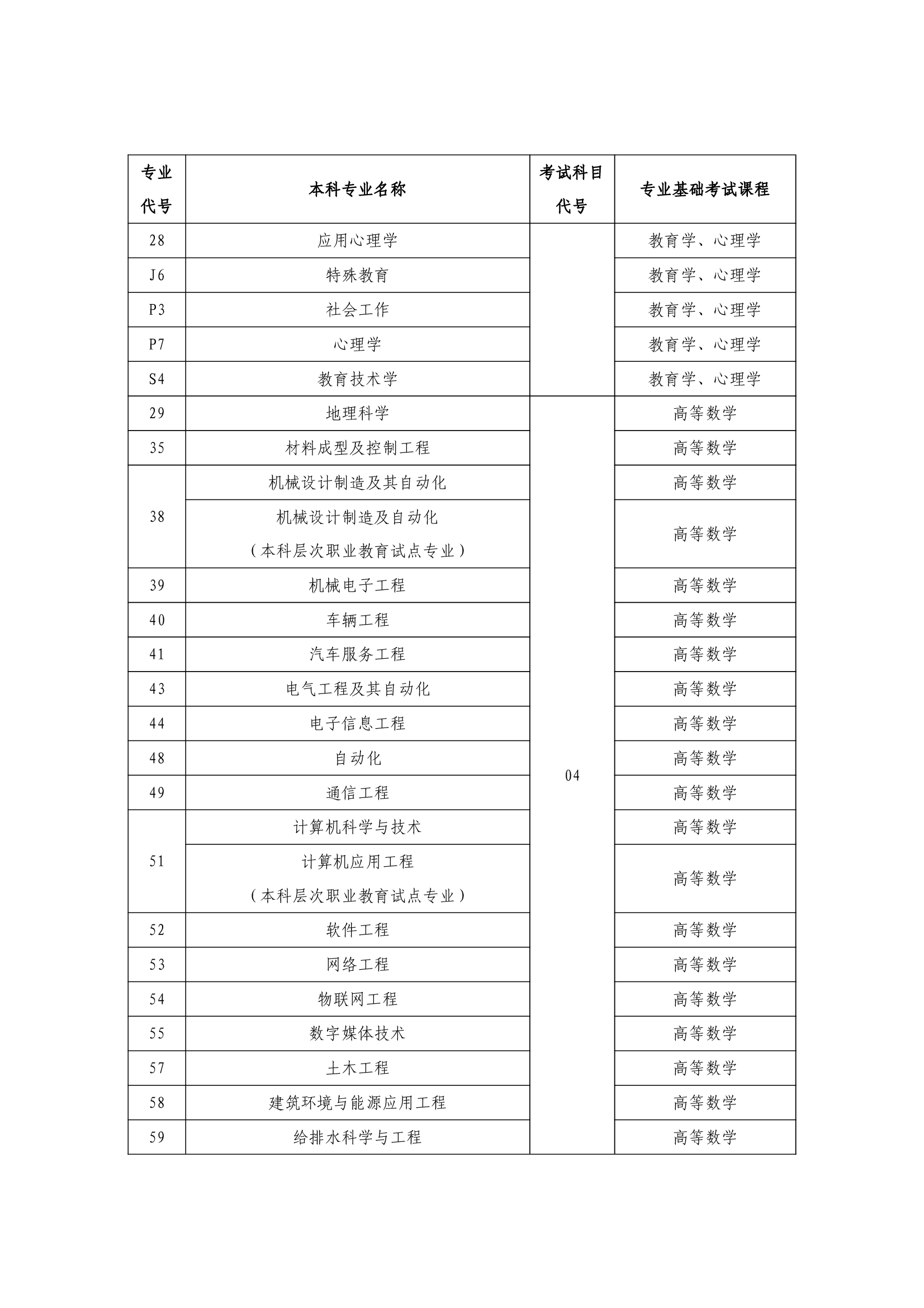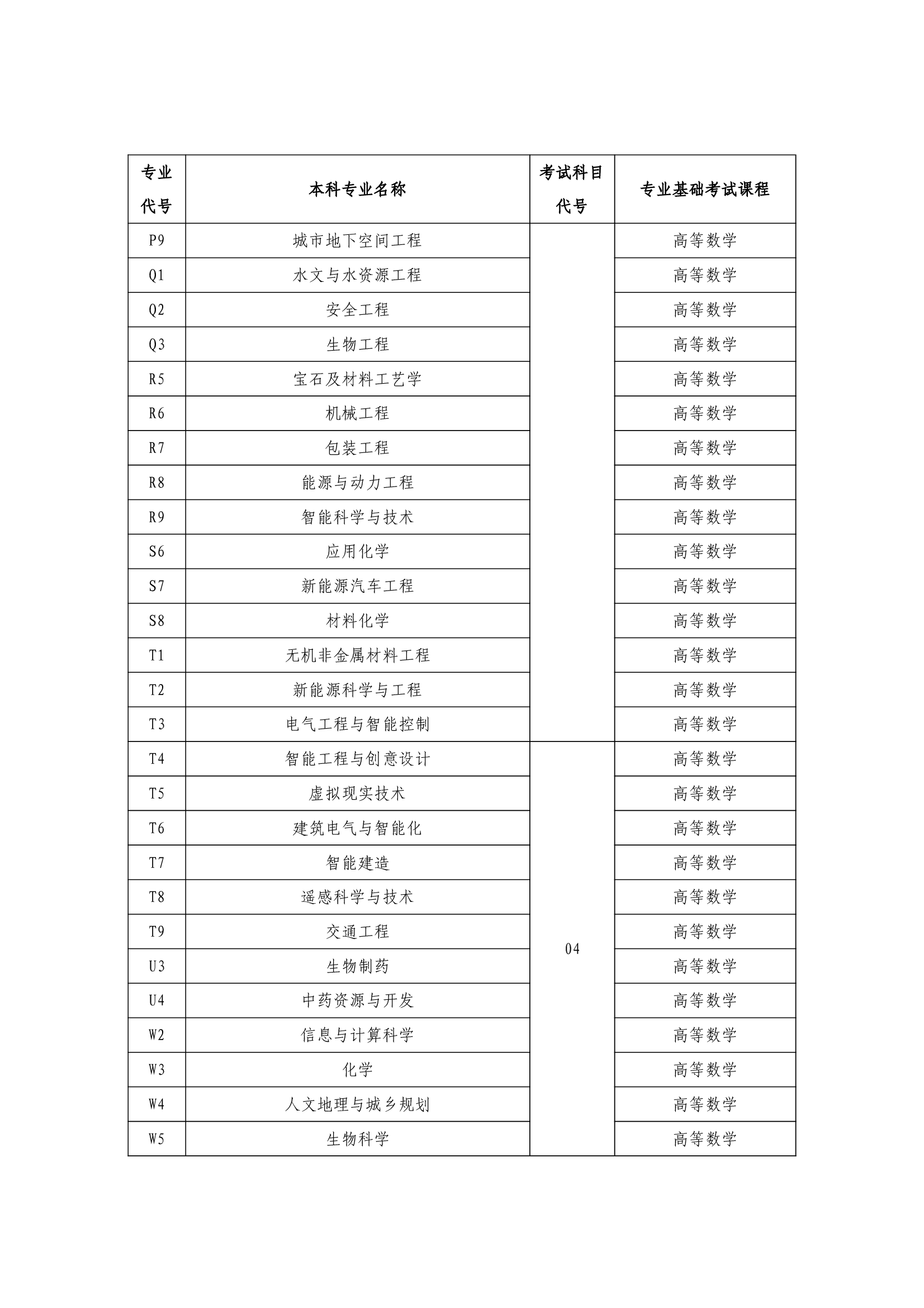 河南省2026年普通高校专升本考试招生专业与考试科目对照表